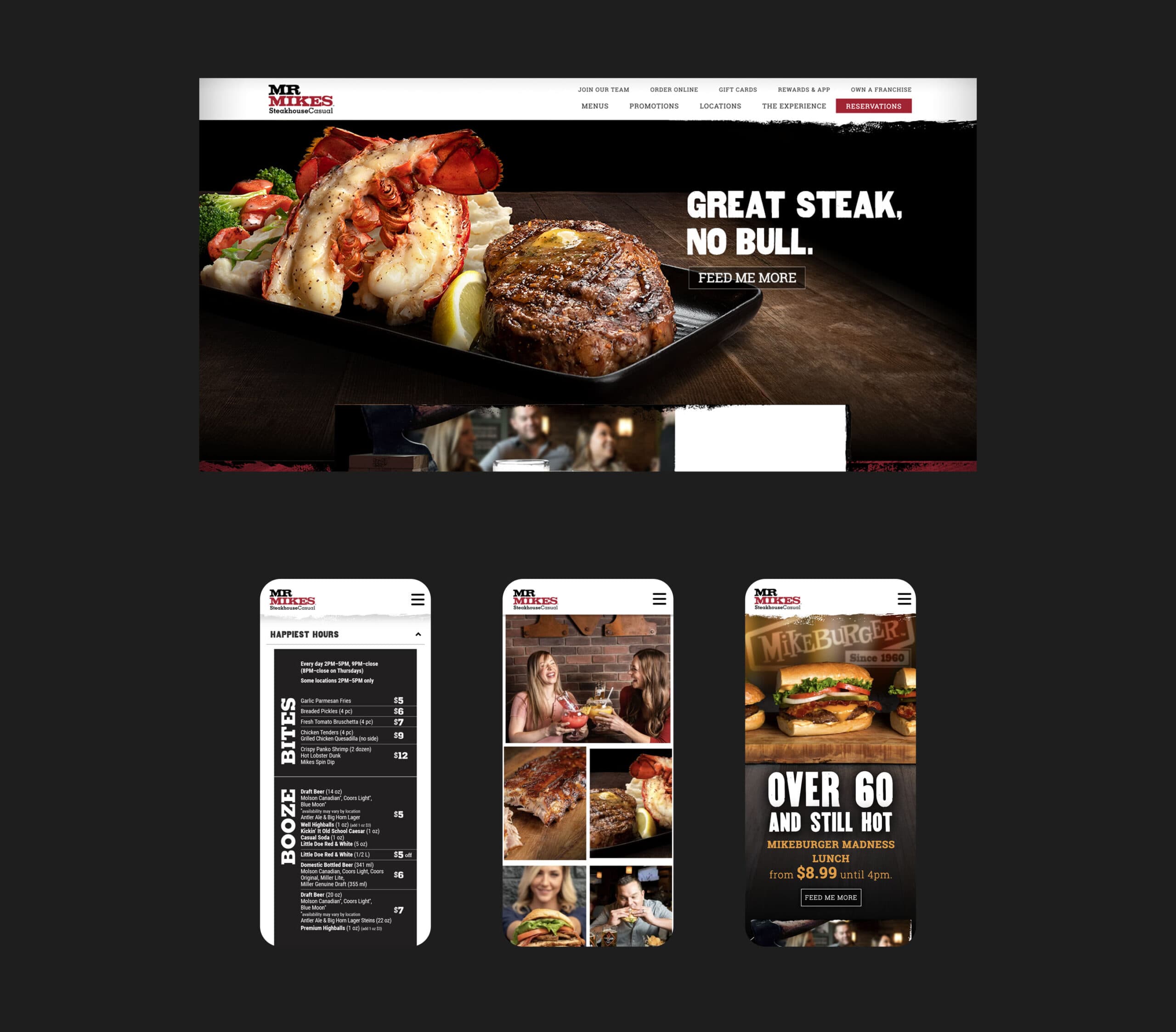 With 50 restaurants across Canada, MR MIKES has a lot of ground to cover. With a host of requests in hand, MR MIKES approached Bare with needs such as web development and maintenance, national and local campaigns, video production, copywriting, in-store graphics, menu designs and more.